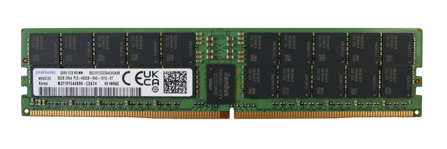 - Kit de RAM 96 GB que consiste en 1x 96GB 2Rx4 PC5-38400 DDR5 4800MHz 1.1 V ECC REGISTERED | M321RYGA0BB0-CQK