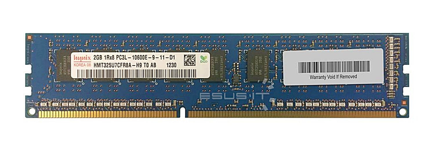 - Kit de RAM 2 GB que consiste en 1x 2GB PC3-10600 DDR3 1333MHz 1.5 ECC UNBUFFERED | HMT325U7CFR8A-H9