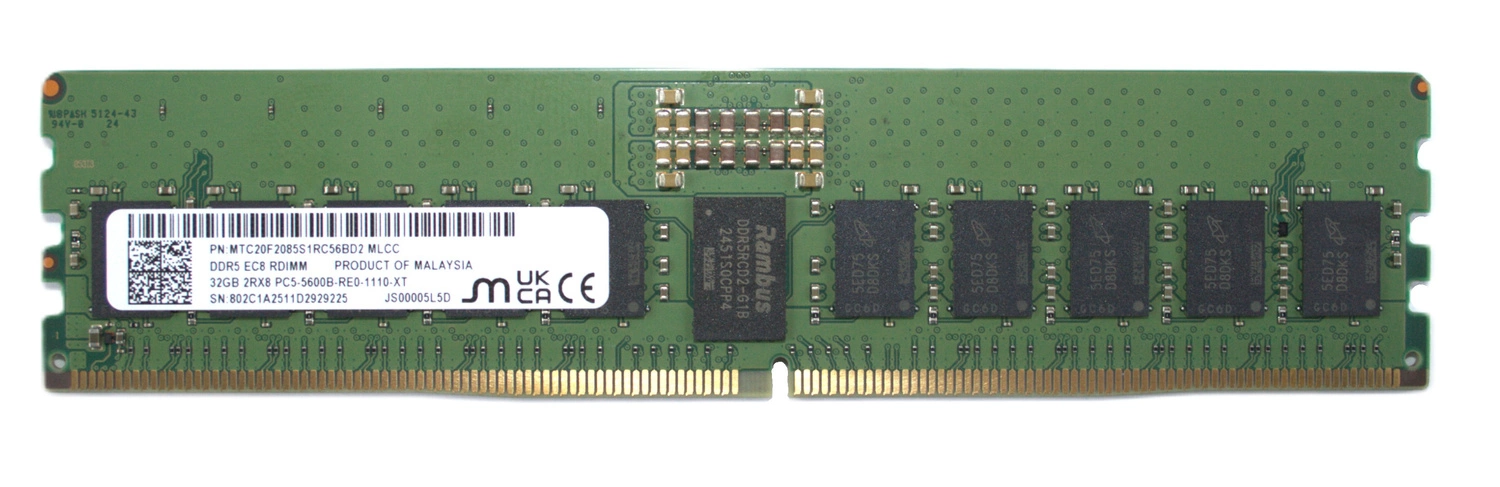 - Kit de RAM 32GB que consiste en 1x 32GB 2Rx8 PC5-44800 DDR5 5600MHz 1.1V ECC REGISTERED | MTC20F2085S1RC56BD2