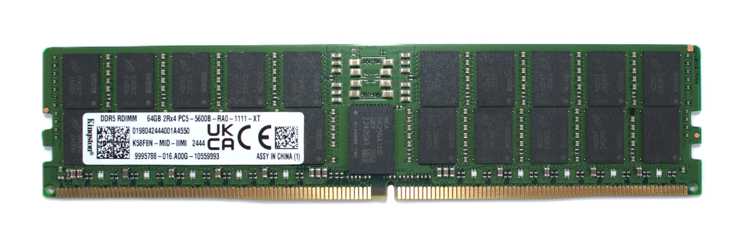 - Kit de RAM 64 GB que consiste en 1x 64GB 2Rx4 PC5-44800 DDR5 5600MHz 1.1 V ECC REGISTERED | K58F8N-MID-IIMI4