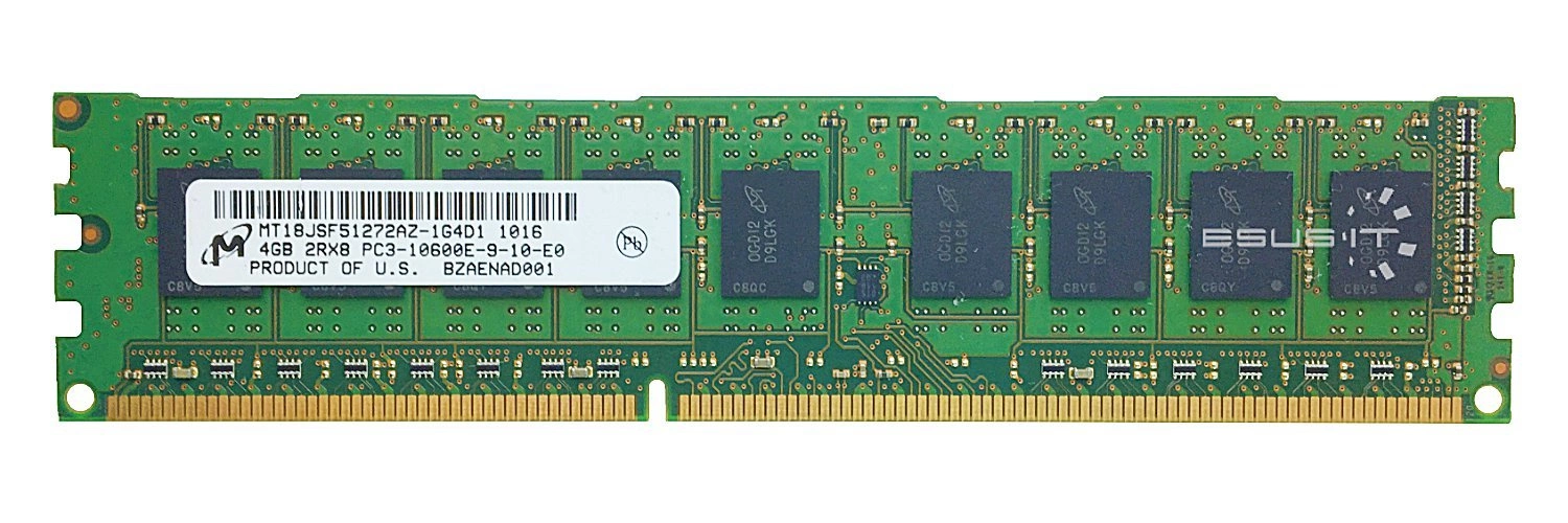 - Kit de RAM 4 GB que consiste en 1x 4GB 2Rx8 PC3-10600 DDR3 1333MHz 1.5 ECC UNBUFFERED | MT18JSF51272AZ-1G4