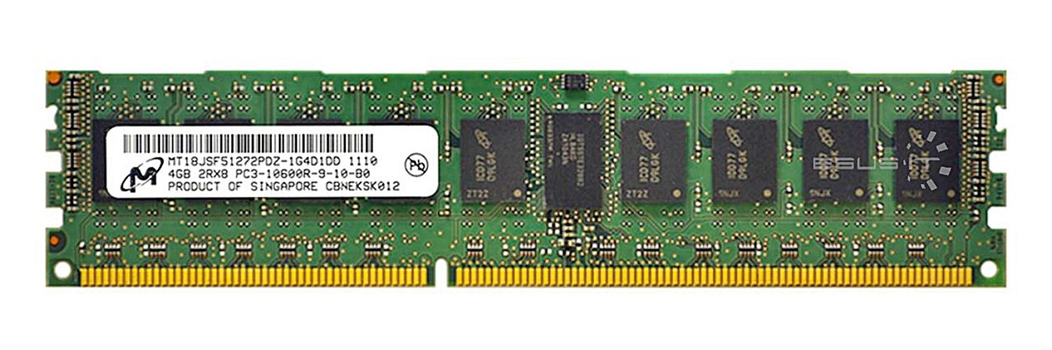 - Kit de RAM 4 GB que consiste en 1x 4GB PC3-10600 DDR3 1333MHz 1.5 ECC REGISTERED | MT18JSF51272PDZ-1G4