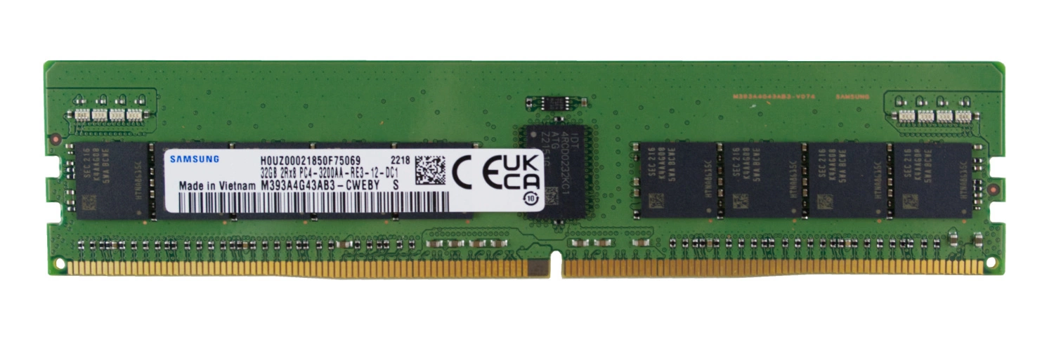 - Kit de RAM 32 GB que consiste en 1x 32GB 2Rx8 PC4-25600 DDR4 3200MHz 1.2 ECC REGISTERED | M393A4G43AB3-CWE