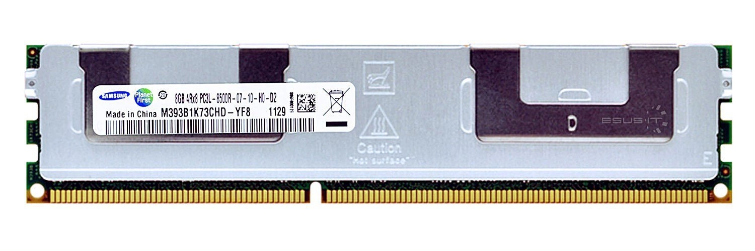 - Kit de RAM 8 GB que consiste en 1x 8GB PC3-8500 DDR3 1066MHz 1.35 / 1.5 ECC REGISTERED | M393B1K73CHD-YF8