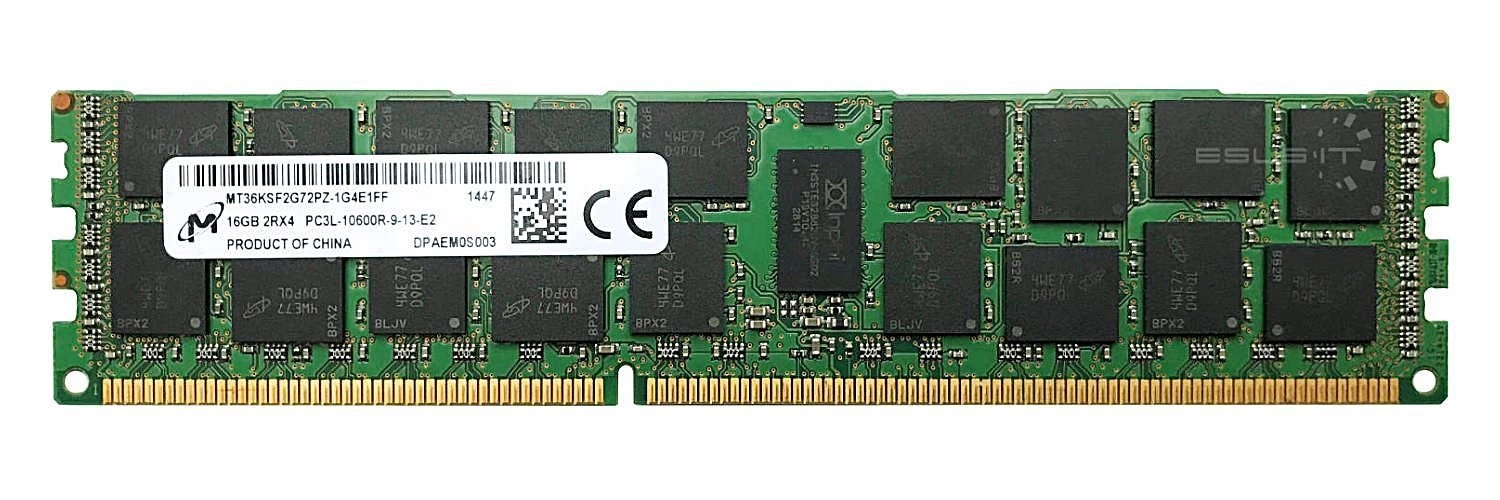 - Kit de RAM 16 GB que consiste en 1x 16GB PC3-10600 DDR3 1333MHz 1.35 / 1.5 ECC REGISTERED | MT36KSF2G72PZ-1G4