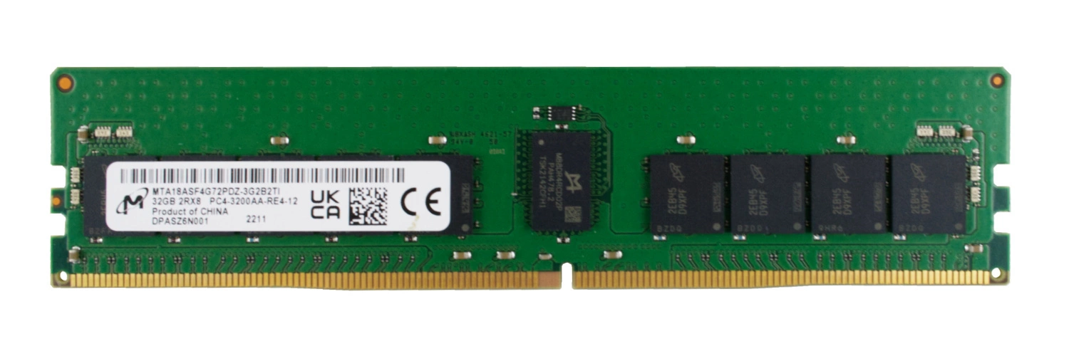 - Kit de RAM 32GB Micron que consiste en 1x 32GB 2Rx8 PC4-25600 DDR4 3200MHz 1.2 V ECC REGISTERED | MTA18ASF4G72PDZ-3G2