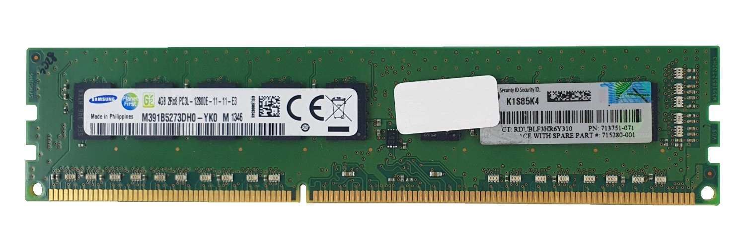 - Kit de RAM 4 GB que consiste en 1x 4GB 2Rx8 PC3-12800 DDR3 1600MHz 1.35 / 1.5 ECC UNBUFFERED | M391B5273DH0-YK0