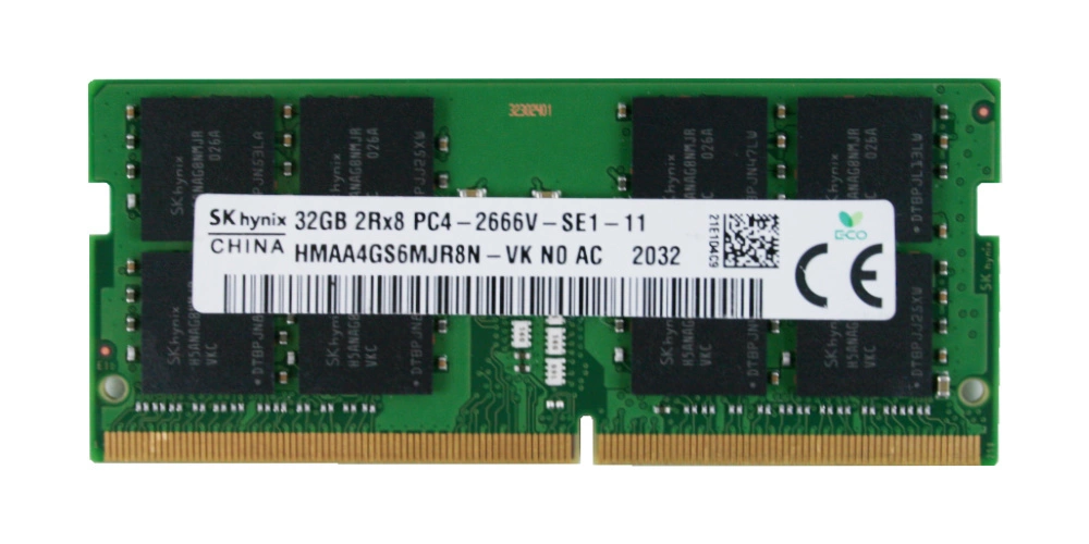 - Kit de RAM 32 GB que consiste en 1x 32GB SO-DIMM DDR4 2666MHz PC4-21300 | HMAA4GS6MJR8N-VK