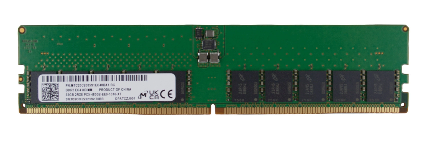- Kit de RAM 32GB que consiste en 1x 32 GB 2Rx8 PC5-38400 DDR5 4800MHz 1.1 V ECC UNBUFFERED | MTC20C2085S1EC48BA1R
