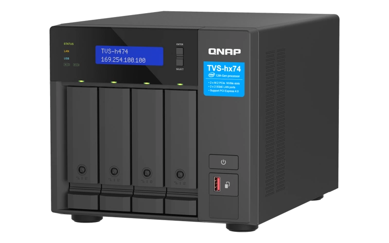 - Servidor NAS QNAP TVS-h474-PT | CPU: Intel Pentium Gold G7400 RAM: 8GB | 2x 2.5GB RJ-45, 2x USB 3.2 Gen 2 | Garantía 3 años
