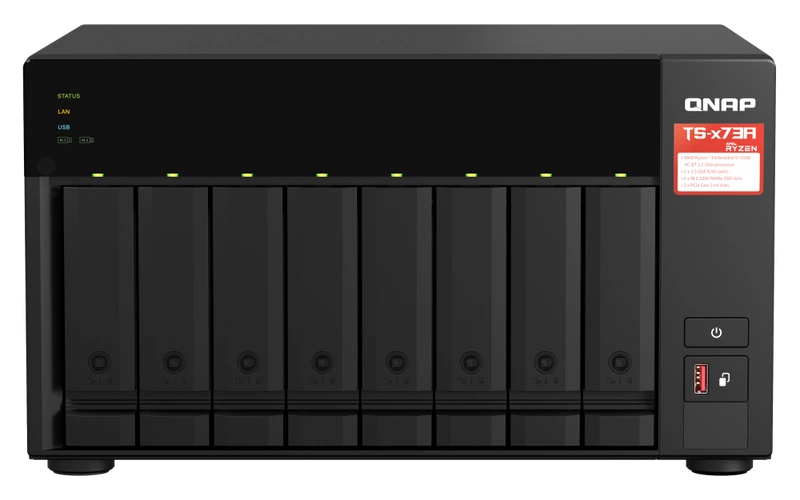 - Servidor NAS QNAP TS-873A | CPU: AMD Ryzen V1500B RAM: 8GB | 2x 2.5GB RJ-45, 4x USB 3.2 Gen 2 | Garantía 3 años