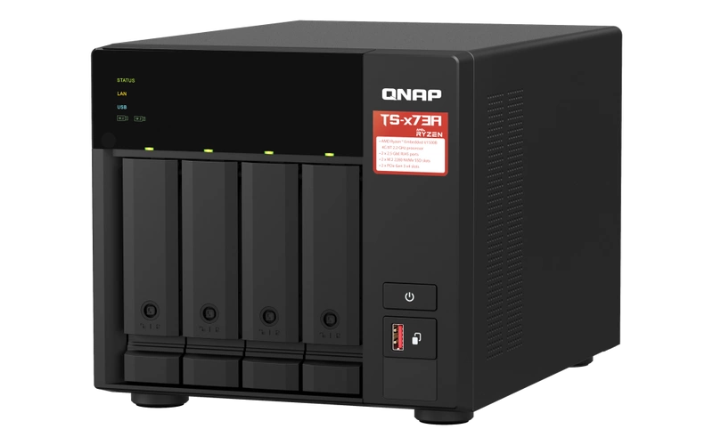 - Servidor NAS QNAP TS-473A | CPU: AMD Ryzen V1500B RAM: 8GB | 2x 2.5GB RJ-45, 4x USB 3.2 Gen 2 | Garantía 3 años