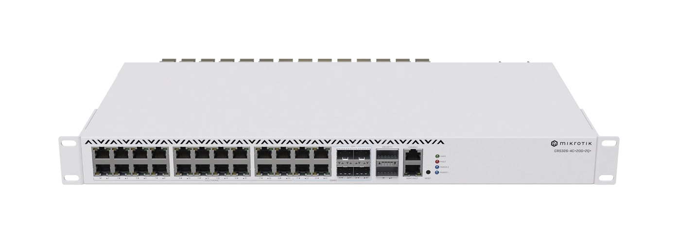 - Switch Mikrotik CRS326-4C+20G+2Q+RM 20x 100/1000/2500 4x RJ-45/SFP+ combo ports 2x QSFP+