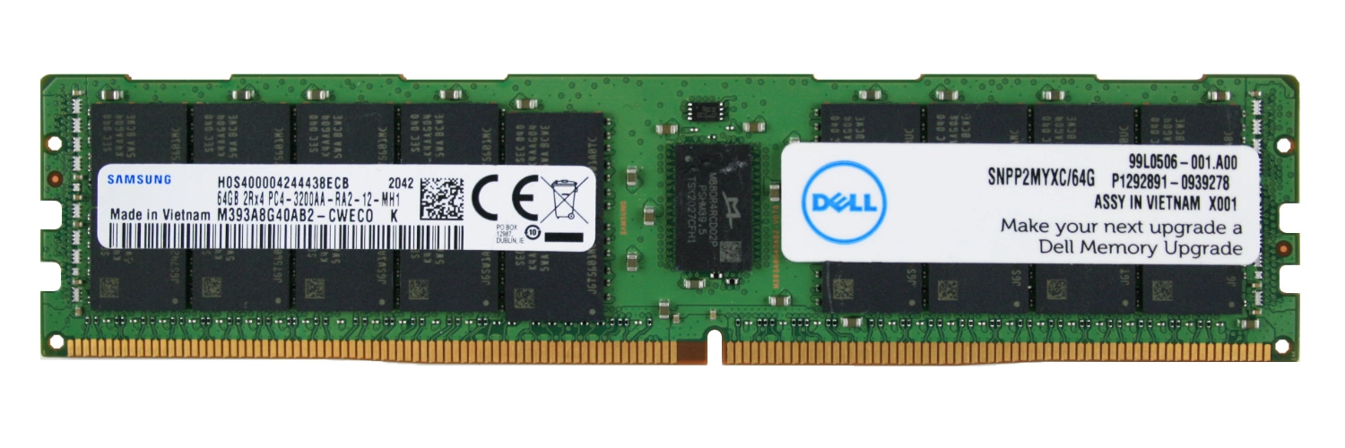 - Kit de RAM 64 GB que consiste en 1x 64GB 2Rx4 PC4-25600 DDR4 3200MHz 1.2 ECC REGISTERED | M393A8G40AB2-CWE